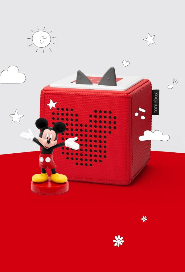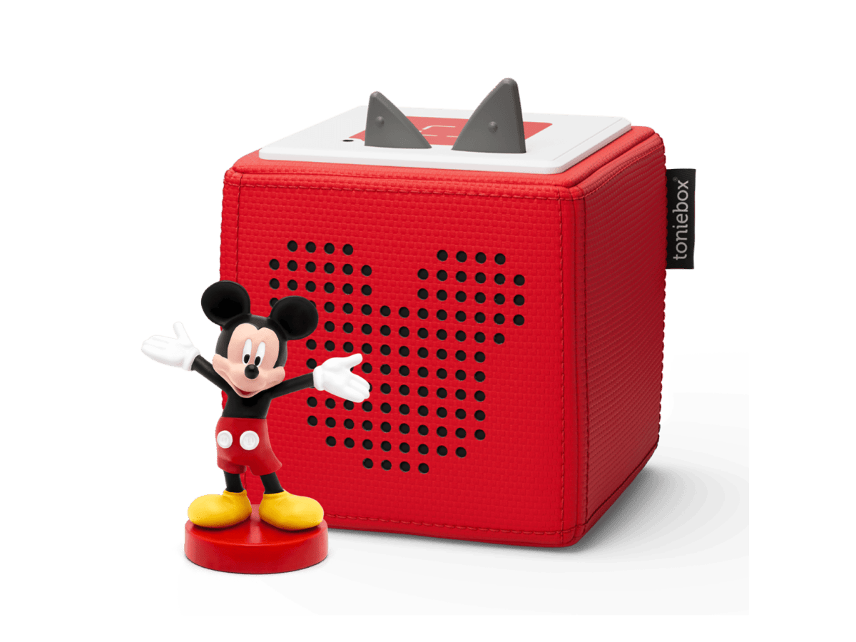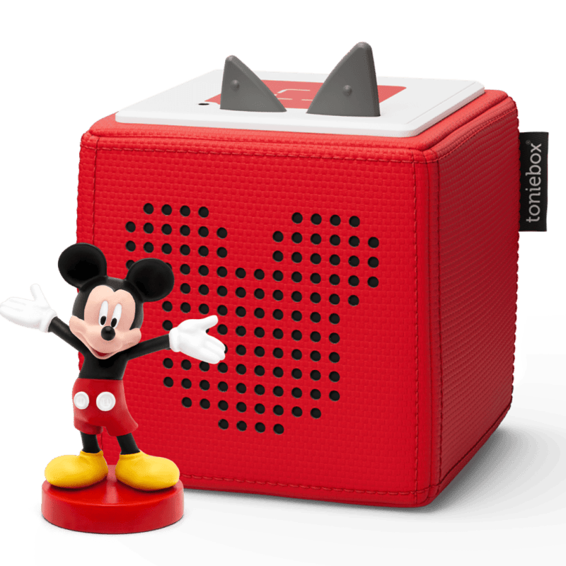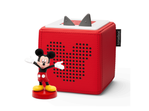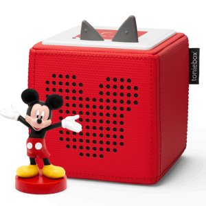 Meet the Toniebox – an audio system designed for little listeners. Turn it on. pop a Tonie on top and let the audio adventure begin! This limited edition Toniebox features a unique speaker design with the beloved Mickey Mouse silhouette.