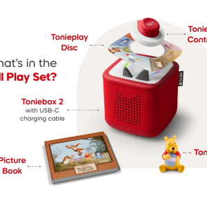 Everything they need to listen. grow and play in a whole new way with Toniebox 2. This Play Set comes with a Disney Winnie the Pooh Tonie figurine. the Disney Winnie the Pooh: Tigger’s Mix-Up Fix-Up Tonieplay game and a Sunset Red Toniebox 2.