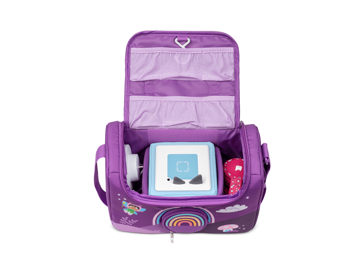 Discover the fairy world with the Over the Rainbow Listen & Play Bag! Take your Toniebox. Tonies. headphones. charging station. and other treasures on a trip. The Listen & Play Bag can easily transport a Tonies collection for a long journey with your family or a short car ride to the park. Don’t worry about unpacking all your Tonies in the car / train / plane. You can simply open the loudspeaker flap and pop a Tonie on the Toniebox. for easy fun on the go!