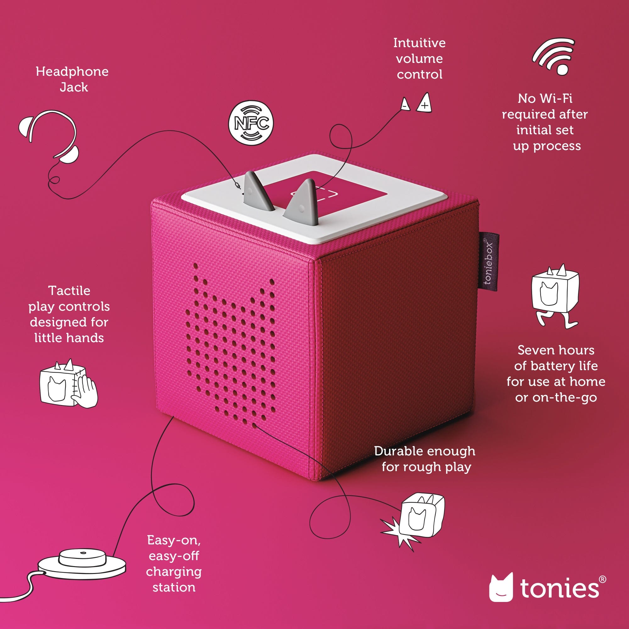 - A growing selection of collectible Tonies that enable kids to play as they listen.