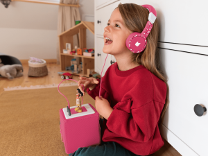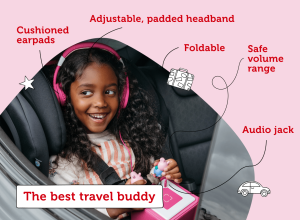 Pink tonies® headphones for kids are designed for kids! These headphones include a kid-safe limit of 85 dB. adjustable cushioned earpads. and a padded headband so they can grow with children. The foldable design allows for use on the go and compact storage.