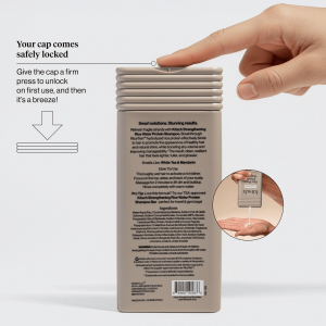 - Fully recyclable packaging and made with PCR (post-consumer recycled) material