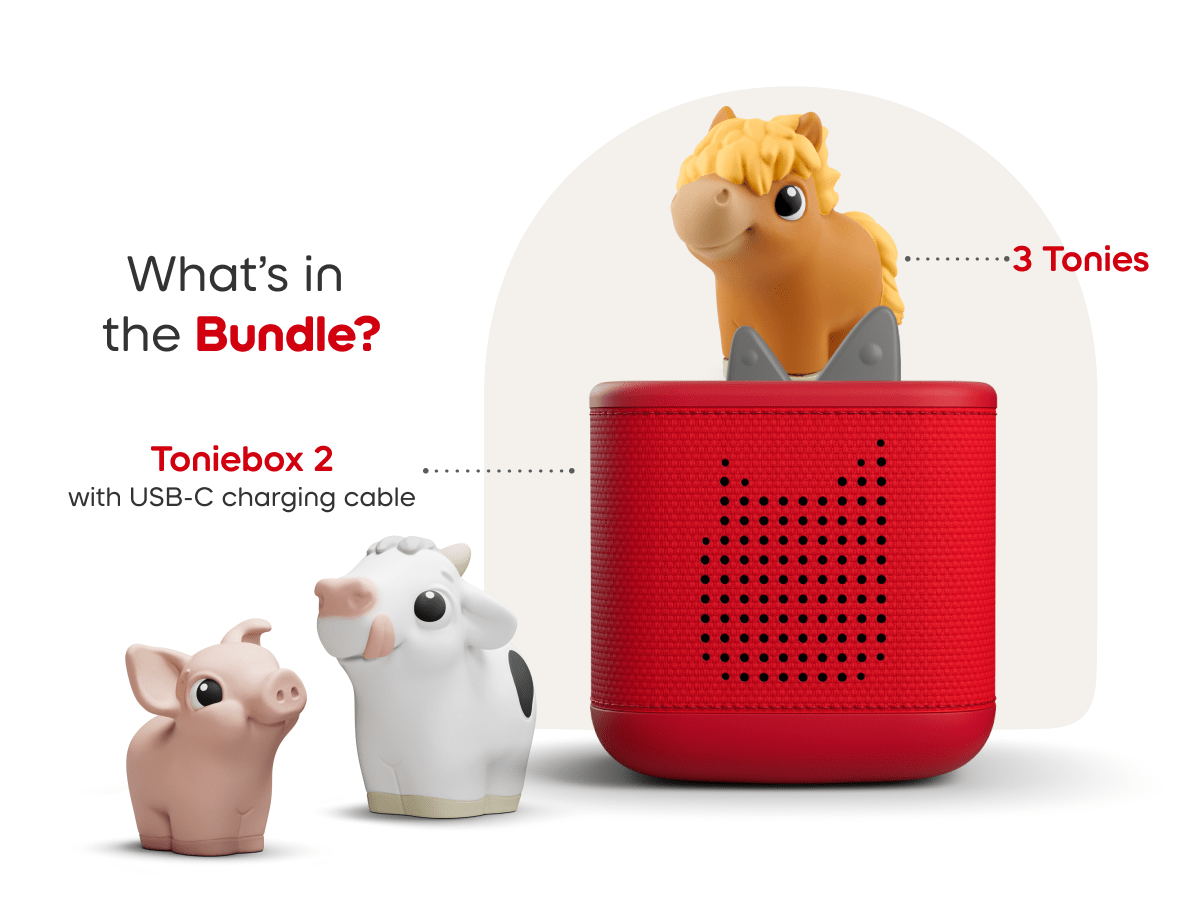 Little listeners will love getting to know their first farm animals with everything they need to listen. learn. and play in a whole new way. This exclusive Tonies.com bundle includes a Toniebox 2 and the My First Tonies: Farm 3-Pack Set.