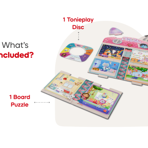 In this Tonieplay Game. kids step into Gabby’s Dollhouse filled with magical adventures! Made for ages 3+. kids can use the included puzzle map of Gabby’s? Dollhouse to uncover hidden objects. enjoy songs from the show. and help CatRat on his sandwich quest for hours of fun and adventure.?