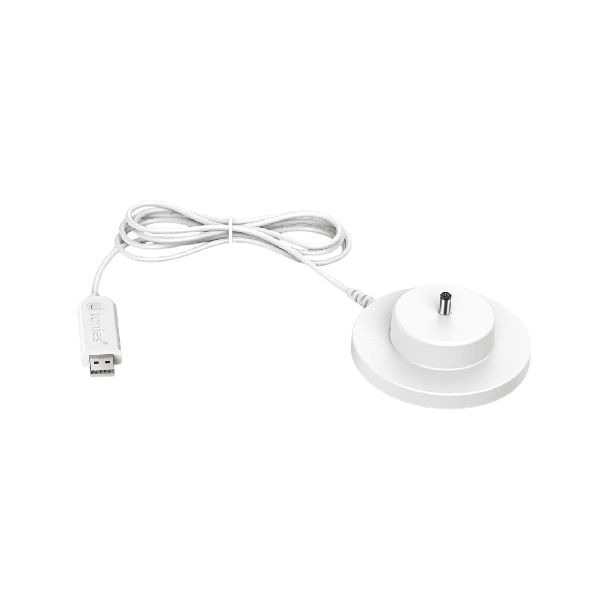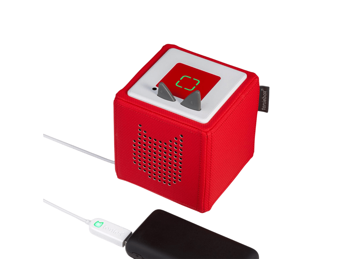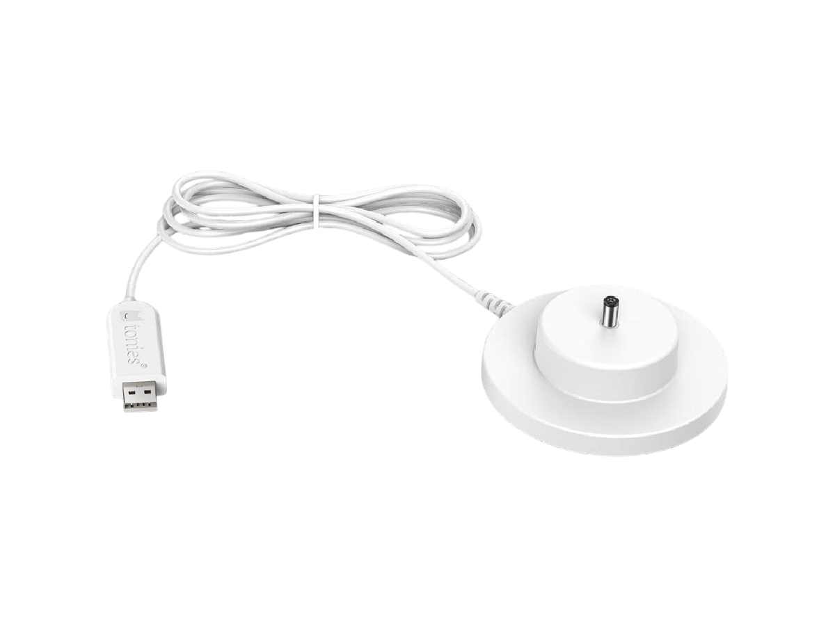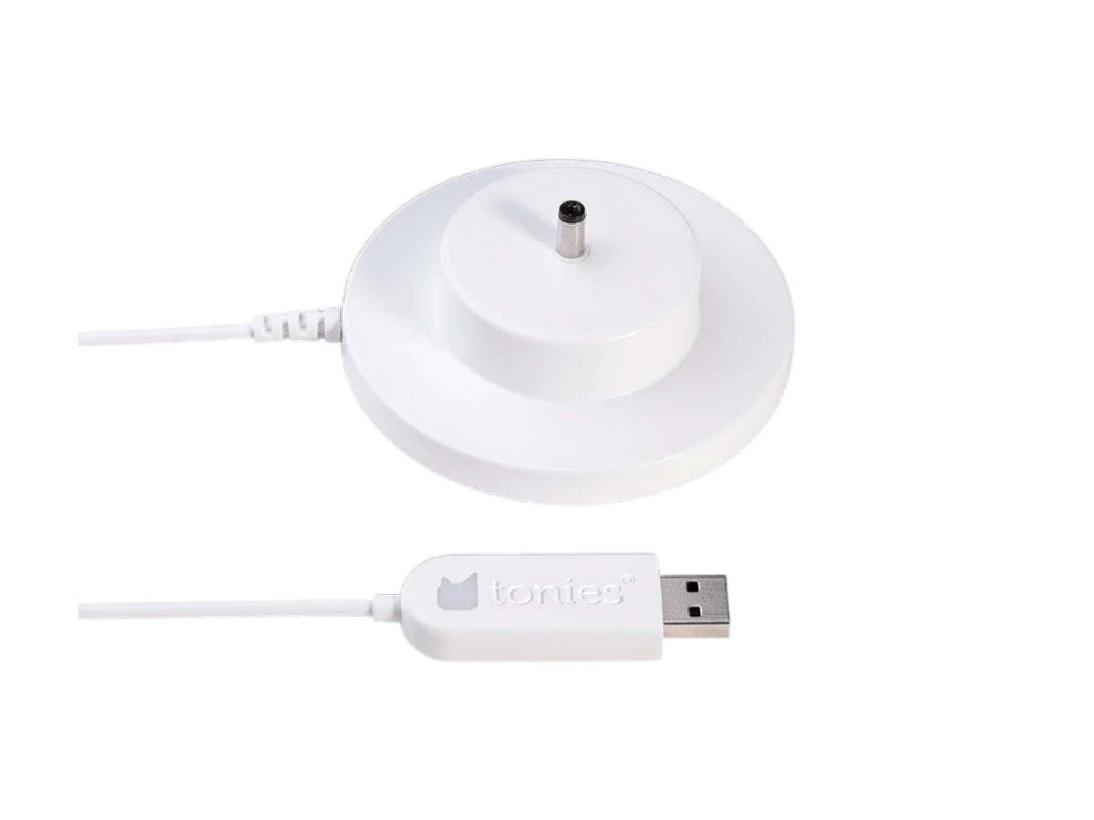 The Toniebox USB Charger lets you charge your Toniebox anywhere with a compatible USB port. This charging station powers the battery on your Toniebox for up to 7 hours of songs and stories!